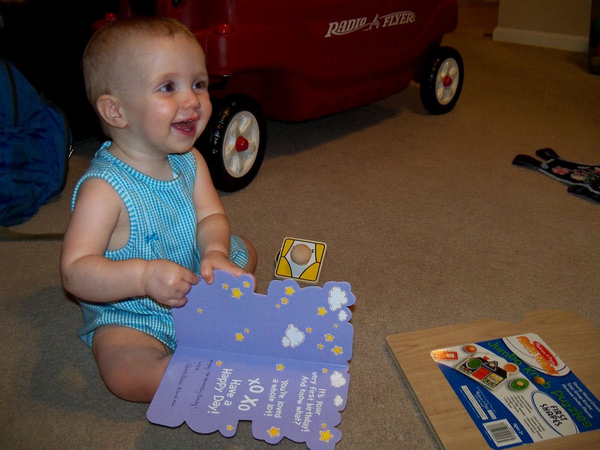 Emily celebrated her first birthday this past Wednesday. Her father and I are still amazed at how much she has grown is her first year. She is almost walking and can repeat several words. It's been an amazing year and we are ready for another one.